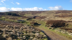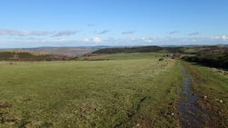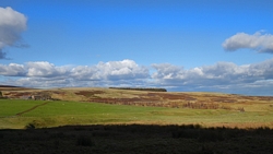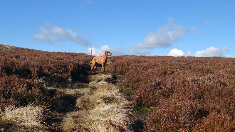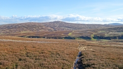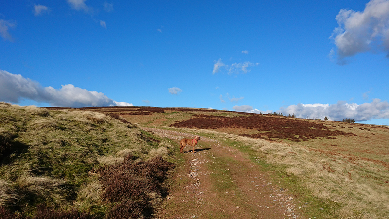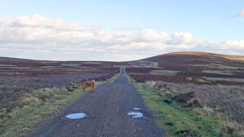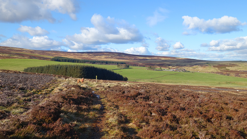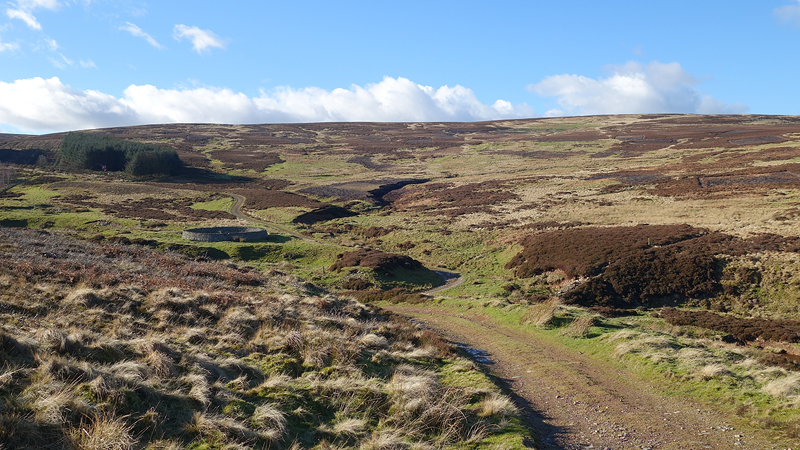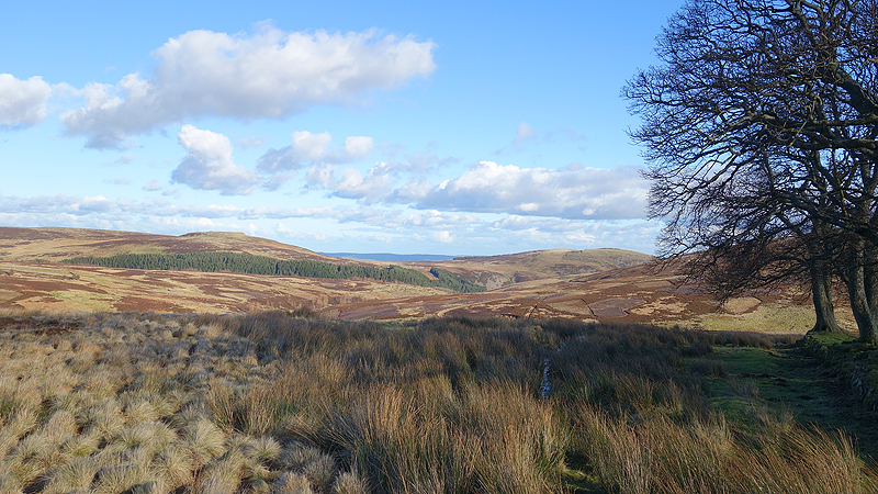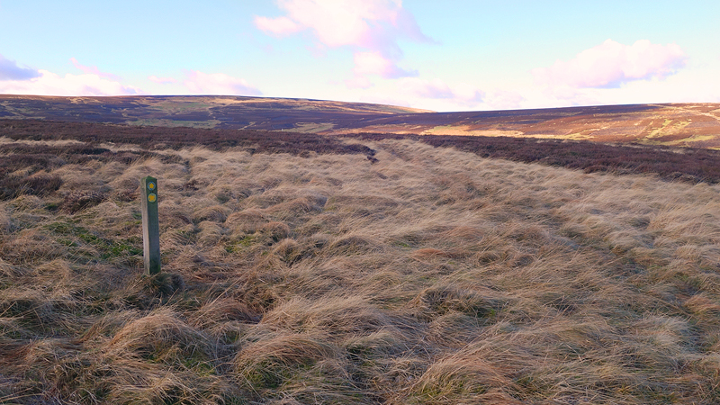 Het is nog maar een klein stukje en dan lopen we de open vlakte al op. Hum… omdat we al vrij hoog zijn, waait het hier behoorlijk en ik ben blij dat ik straks op de terugweg de wind mee zal hebben. Dat schiet dan tenminste op. Ik twijfel nog of ik de St Cuthberts way zal nemen of gewoon de gravel weg op de terugweg maar dat zie ik straks wel. Eerst verder nu over de open vlakte.
