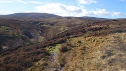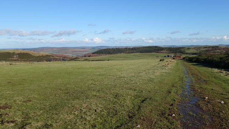 Na het watertje weer even omhoog. Het loopt allemaal niet echt makkelijk moet ik zeggen maar ik doe mijn best. Ik ben wel veel tijd kwijt geraakt met die drone en met foto’s maken. Af en toe moet ik ook even op de kaart kijken en ik loop zelfs ergens bijna verkeerd. Raar is dat toch. Maar ik ben bijna bij Broadstruther en ik moet nu alleen nog even klimmen maar over een normaal gravelpad.