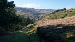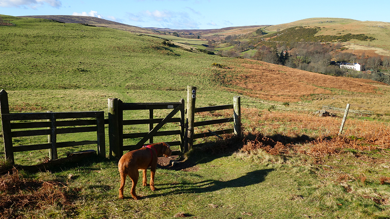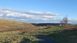We lopen nu in de richting van een farm die daar in de rimboe ligt. Vanaf daar kan ik over de verharde weg terug of via de St Cuthberts way. Ik besluit de weg te nemen zodat ik een volgende keer de bovenkant kan lopen, dus heen via de St Cuthberts way en terug via de weg. Ik kan dan eventueel naar de watervallen en/of Yeavering Bell. Ik weet immers nu aan welke kant ik die rotberg weer af moet lopen!