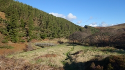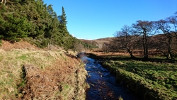 Jammer genoeg houdt het mooie pad weer op en lopen we weer door de nattigheid. Ik moet zeggen dat de Sealskinz toch wel iets doen. Ze zijn niet waterdicht maar het helpt toch wel om mijn voeten warmer te houden. Ik vind het eigenlijk wel prettig op dit soort terrein moet ik bekennen.