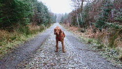 Vandaag is het de hele dag stralend weer. Zonnetje, geen wind en fijne temperatuur. Vannacht heeft het wat gevroren dus alles was wit van de rijp vanmorgen. Na de middag besluit ik voor een easy en kort wegrondje op pad te gaan met woef. Geen gedoe gewoon even lekker een kort ommetje. Niet te dicht bij huis want ik zag vanmorgen tot mijn verrassing dat woef zich nog steeds aanbood aan de farm reu die weer voor het raam stond. Dan maar naar Glororum. Dat is leuk en kort. Zo gezegd zo gedaan en al snel waren we we op pad voor het rondje dat we vorige week ook deden als tweede rondje op de dag. Eigenlijk had ik dat vanmorgen ook wel kunnen doen maar ik wil nog niet rond de farm lopen met mijn sletje.