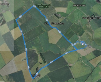 Vandaag is storm Henry aangekomen in de UK. Het is echt niet te geloven dat na de eerste 2 weken zonder wind nu alleen maar de ene storm na de andere hier raast. En dan hebben we het echt over storm. Niet een windje maar storm waarbij vrachtwagens worden omgeblazen en elektriciteit uitvalt enzo. Toch schijnt – tussen de buien door – de zon en is de temperatuur goed. De regen is nu ook alleen maar een harde bui en daarna weer niets. Dat is goed nieuws voor de plassen op de weg want wegrondjes zijn dus gewoon mogelijk als je even niet op de wind let. En dat doe ik dus ook niet. Woef moet toch uit en omdat rond 2 uur het zonnetje heerlijk schijnt, gaan we op pad voor ons rondje. Het eerste rondje gaat prima en ik besluit tot een tweede rondje. Niet via Shoreston maar gewoon twee dezelfde rondjes. Dit vierkant is helemaal goed qua wind. Tegenwind, tweemaal zijwind en windje mee. Wat wil je nog meer.