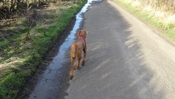 Ik heb nu wel zin om woef op te halen eigenlijk. Gezellig samen met haar een stukkie. Ik moet wel snel schoenen wisselen want ik wil het laatste stuk offroad doen omdat dat voor haar leuker is. Af en toe heb ik met S. een 1 regelige mail uitgewisseld. Hij heeft me in de gaten gehouden en moedigt me af en toe aan. Leuk!