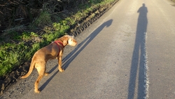 Daar ben ik dus weer veel te snel. Rupsje nooit genoeg wil nog wel een stukje en woef ook wel. Maar ik denk dat het genoeg is. Niet overdrijven dan maar en de ultra zelf is maar 60 km notabene. Toch vind ik het eigenlijk stiekum wel jammer. Het is zulk heerlijk weer. Kijk woef en mij nou met die schaduwen!