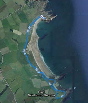 Niet erg origineel om weer naar Beadnell te gaan maar dat was ik ook niet van plan. Ik had een andere route gemaakt in Belford maar ik kon echt nergens komen waar ik wilde en na een uur (!) was ik uiteindelijk dan maar bij Beadnell. Op hoop van zegen want het getijde was verkeerd dus mensen zouden misschien wel de duinen kiezen in plaats van strand en in de duinen kan ik woef net wat minder makkelijk in de gaten houden. Maar ik zou het er maar op wagen en kijken hoe het zou gaan.