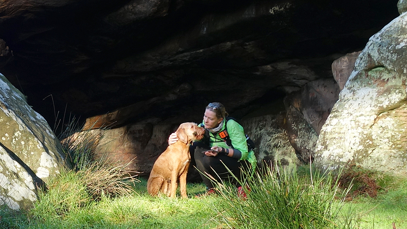 Het pad langs de rotsformatie is niet makkelijk te vinden maar we komen er wel.