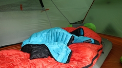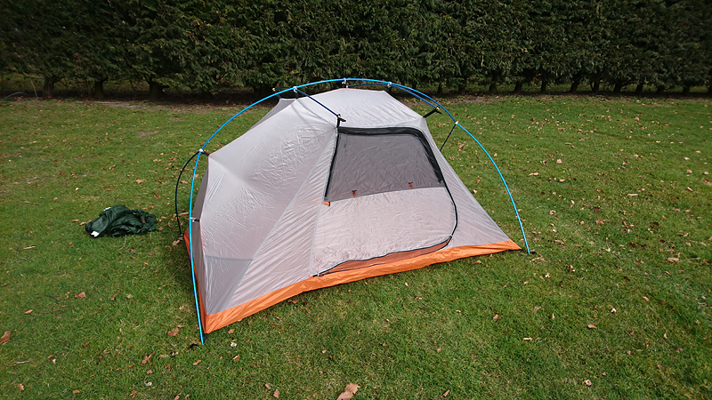Ik neem afscheid van de hoteleigenaar en zijn vrouw en ga me klaarmaken voor de nacht. Buiten is het totaal niet koud en er staat geen wind. Best lekker en het is heerlijk stil zo in het voorseizoen. Er is hier natuurlijk nog geen hond en ook in het hotel was het zo doordeweeks heel stil. Ik maak me daarna ook klaar en kruip de tent in. Ik vind die tent zo deze eerste keer wel fijn. Makkelijk erin en eruit, grote voortent(en) en twee openingen. Ook de hoogte is ideaal want je kunt gewoon zitten.