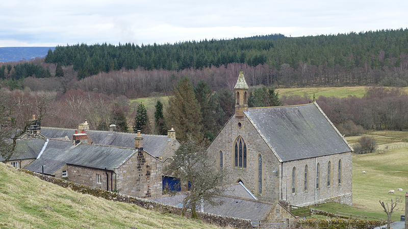 Al snel lopen we harbottle in. Lief dorpje met mooie huizen en een kerkje.