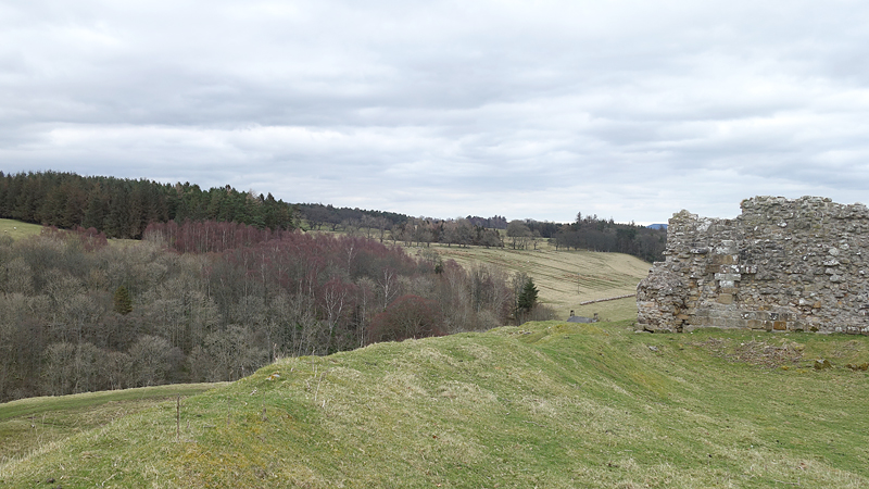 Er staat niet veel meer overeind maar het is een mooie plek daar. Ik loop om het castle heen en bekijk alles maar geniet vooral van het uitzicht. Het kerkje van Harbottle is ook goed te zien vanaf de andere kant. Ik praat nog wat met een oudere man de foto’s staat te maken en we hebben het erover dat je wel wat fantasie nodig hebt hier om er nog wat in te zien….