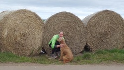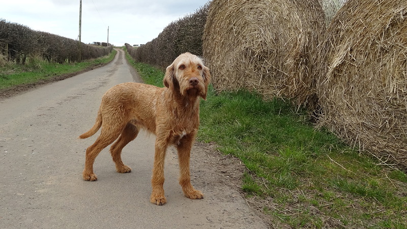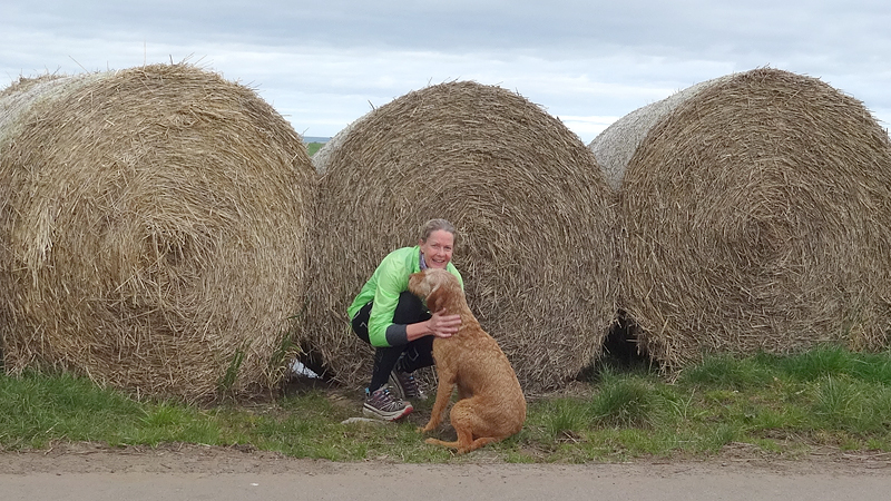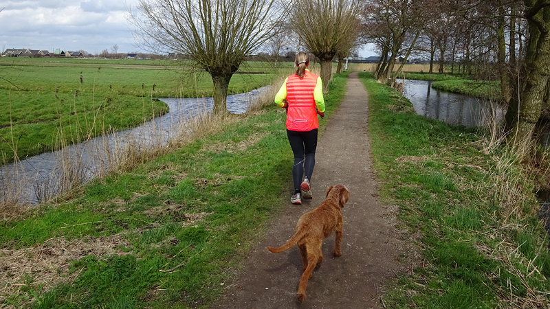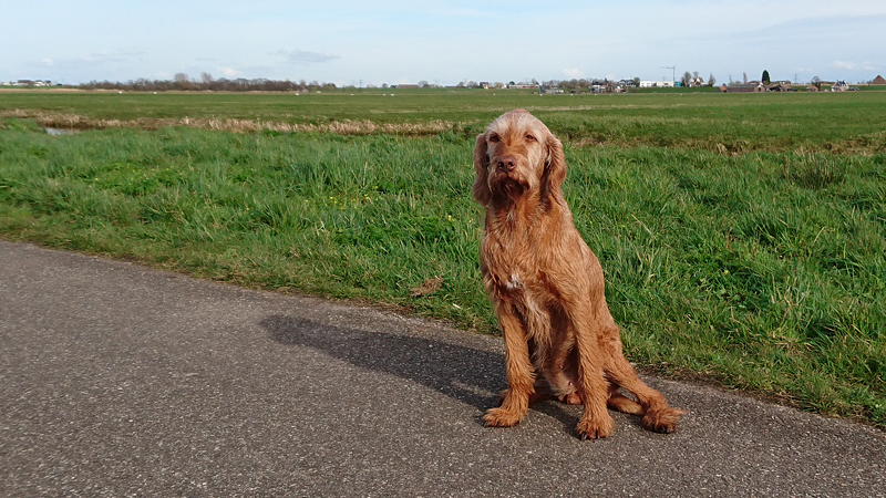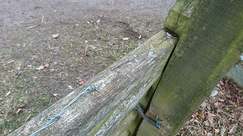 Daarna gaan we weer verder met ons rondje. We slaan rechtsaf, lopen even over de weg en dan over een weiland. Als ik de houten poort wil sluiten, grijp ik in het prikkeldraad dat bovenop zit. Wat een idiote plek daarvoor. Voor de zekerheid maak ik het wondje schoon met een ontsmetting doekje uit mijn ehbo kitje.