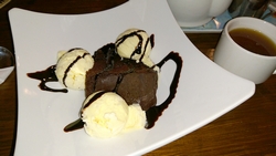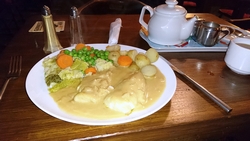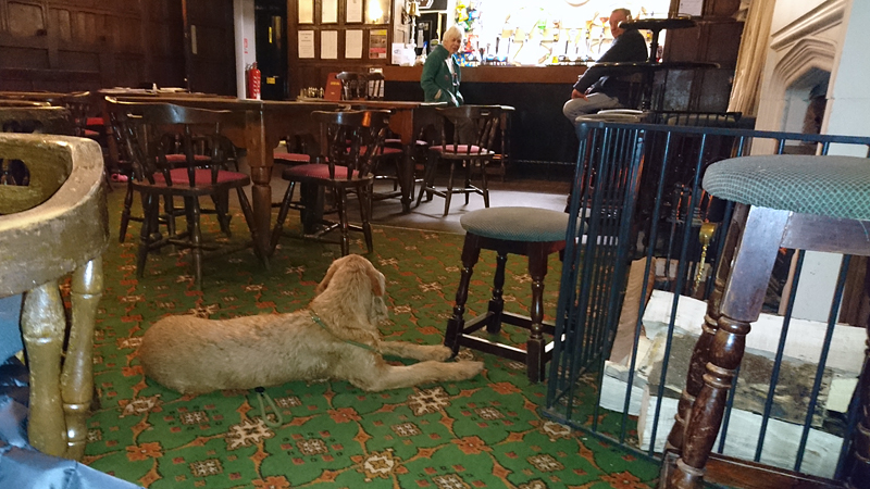 Even na 6 uur ga ik bij de naastgelegen pub kijken. Lekker warm daar en rustig. Waf is welkom wist ik al van de camping baas en dat klopt. Ze is zelfs zeer welkom en wordt verwend met kluifjes en aaitjes. Ik neem wat lekkers en zelfs een toetje.