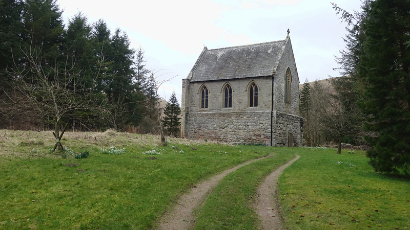 Ik zie het kerkje van Alwinton al liggen dus we schieten nu op. Ik besluit dat het ook genoeg is en doe het extra lusje niet meer. Waf moet eten en het is goed zo.