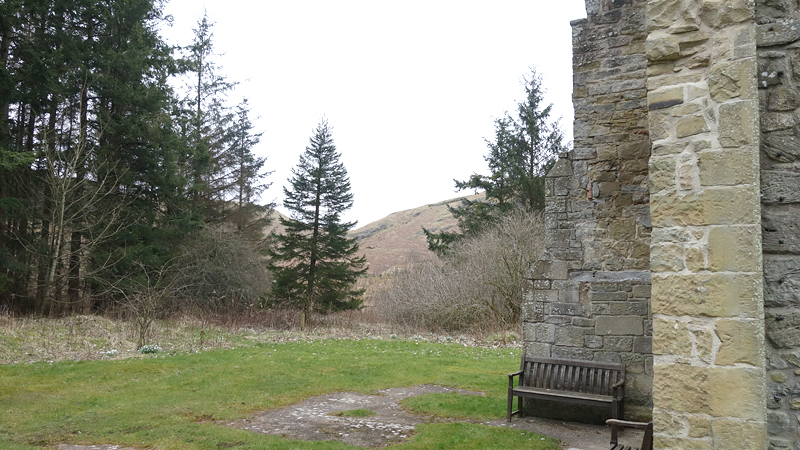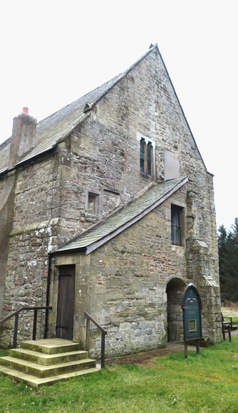 Harbottle is de bestemming voor deze eerste ronde, want daar zijn nog ruïnes van een castle. Ik loop langs het riviertje terug naar de weg en sla linksaf. Daarna zie ik het kerkje al van Alwinton. Ik moet er toch langs dus neem ik een kijkje.