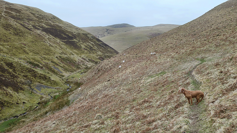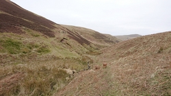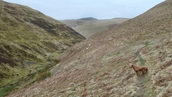 Daarna gaan we aan de andere kant weer naar beneden richting Harbottle lake. Het pad is niet makkelijk maar wel te doen en gelukkig niet heel nat. We moeten immers nog een dag!
