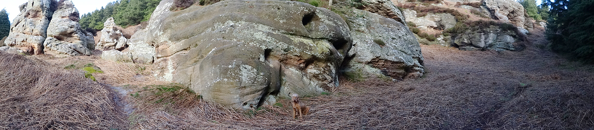 Maar dan ineens kom ik op een splitsing waar ik ook een routebord zie staan. Dat is boffen want samen met mijn eigen kaart, kan ik nu even een plan maken wat ik ga lopen. Ik kan inderdaad met een soort lusje teruglopen, maar ik kan ook rechtsaf en dan een lus zuidwaarts maken zodat ik een rondje loop. Ik tuur op mijn kaart en lees het hoogteprofiel. Ros castle settlement zal het hoogste punt zijn op ruim 300 mtr…. ik ben nu pas op 200 mtr dus dat betekent nog wel even een klimmetje. Ik besluit het toch te doen. Ik ga vast schelden maar achteraf is het altijd leuk. Geen idee hoe lang het allemaal is maar dat zie ik dan straks wel. Het lijkt allemaal niet echt ver.