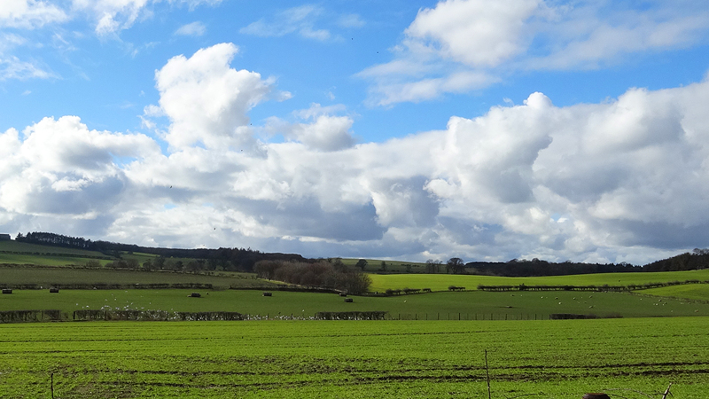 Daarna gaat het vlug. Ik loop via Hepburn weer naar Chillingham. Als ik bij de drukke weg uitkom, neem ik even nog een detour via een onverhard stuk zodat ik de drukke weg kan vermijden en zo loop ik weer richting de statige oprijlaan van het castle. Nog een laatste keer langs het castle en dan sta ik weer bij de auto. Geen 10 km wegrondje maar 13 km lastige route maar wel bijzonder. Chatton helemaal niet gezien omdat ik zuidwaarts liep en niet noordwaarts vanaf het castle. Ook goed. Zie je wel? Achteraf is het altijd leuk.