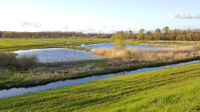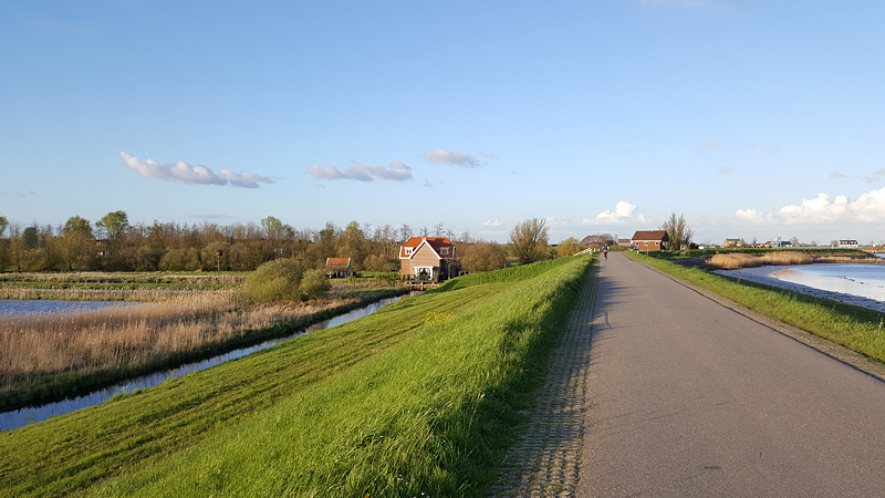 Ik loop naar de dijk en besluit door te lopen en over de dijk weer het gebied in te lopen. Daarna loop ik voor de lol eens linksaf richting de weg om later weer het natuurgebied in te gaan. Zonder woef moet ik natuurlijk vooral een andere route kiezen die ik anders niet zou kunnen doen! Het lopen gaat eigenlijk heel goed. Ik blijf heel lang onder de 140 lopen op een mooi tempo en ik zie dat ik eigenlijk rond de 6.30 min/km gemiddeld aan het lopen ben. Dat valt me dus reuze mee eigenlijk en ik ben benieuwd of ik dat ook op een 15 km ronde zou kunnen vasthouden met een beetje nette hartslag nog. Ik zie een nieuwe groep jonge eendjes. Dat is leuk! Volgens mij is er niets over van het andere nestje jonkies. Verder zie ik niet veel bijzonders nog. Enkele rietgorsjes maar geen blauwborstje.