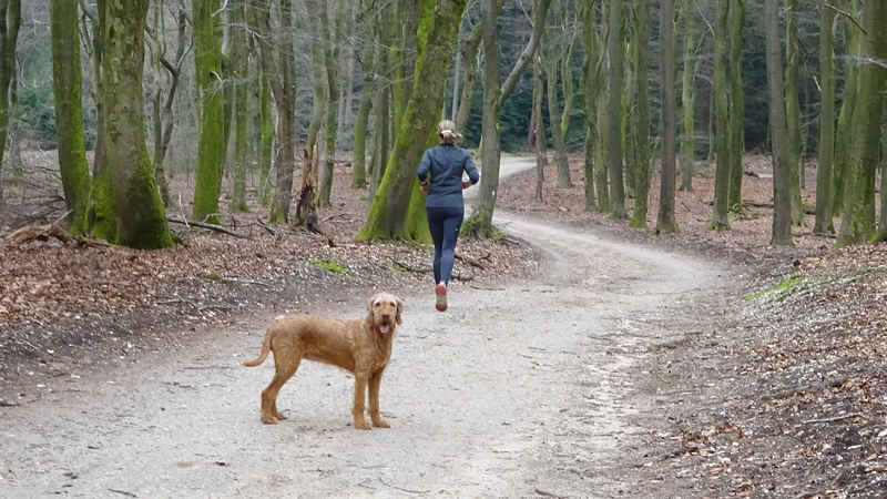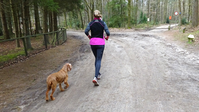 Het lopen gaat goed en vlot. Deze keer kies ik voor een RWR rondje met een ratio van 2/30 en loop ik aardig door op de rensegmentjes. Op deze manier kan waf even stappen, ruiken en een plasje doen. Ik heb afgelopen week allerlei variaties gedaan en ben ook het continu lopen weer mooi aan het opbouwen. Gelukkig heb ik in de UK ook veel continu rondjes gelopen rond het huisje en liep ik natuurlijk ook de 10K race. Omdat dat prima gaat, is het 2/30 lopen echt een makkie natuurlijk.
