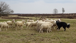 Ik stop toch even om te kijken en praat met de herder(in) over de hond die nog in training is. Het is een herplaatser die veel aanleg heeft maar nog erg veel moet leren. Het is leuk om de schapen te bekijken van zo dichtbij en met haar te praten.