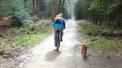 Als we weer bij Garderen komen, maken we nog een extra lusje over de rode route. Daar lijkt wel zand te zijn verdwenen want de wortels liggen allemaal boven de grond. Dat loopt en fietst dus niet makkelijk maar leuk is het wel.