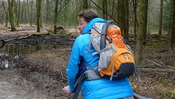 Voor het eerst loop ik lekker zonder rugzak en heeft S. de Deuter Futura op zijn rug met wat water voor woef en de camera en riem.