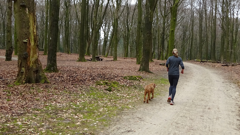 We vertrekken na de middag voor onze run en parkeren weer bij de camping aan de bosrand. Op zich best jammer dat we het niet gaan doen, maar we hebben al enorm veel dingen in de laatste week gepropt dus dat is al niet slecht. Woef heeft rustdagen gehad en is vrolijk en blij, dus nemen we de doggyride niet mee. Ik ga ervan uit dat ze fluitend dit rondje gaat meelopen en mocht dat niet het geval zijn, dan kunnen we altijd eerder terugkeren en de kar ophalen uit de auto. Maar ik kan alvast verklappen dat woefje werkelijk nergens problemen mee had, aan het einde nog leuk met een tak ging rennen en wij vermoeider leken dan zij. Geen enkel probleem dus. Zij was nog lang niet klaar aan het einde van de run. Overigens is dit een prachtige afleiding voor haar want ze is weer een beetje schijndrachtig compleet met uiertjes.