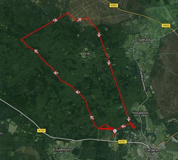 Eigenlijk wilden we vandaag gaan overnachten in Garderen na de run, maar we besluiten toch om alleen een stukje te gaan lopen daar en dan naar huis te gaan. Het weer is prima om te lopen overigens. Bewolkt, geen wind en een temperatuur van een graad of 12. Niet zo warm als voorspeld was, maar een prima dagje. De keuze om gisteren met de kan op pad te gaan, bleek dus een goede want het weer was iets beter gisteren met meer licht en zon.