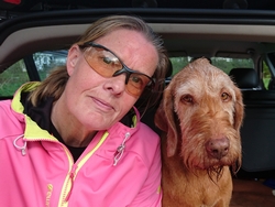 Ik maak nog een selfie van waf en mij in de auto maar S. maakt daar weer een foto van en dat levert dit resultaat op: