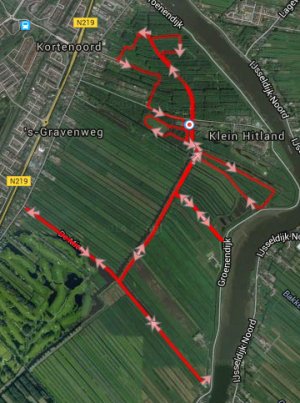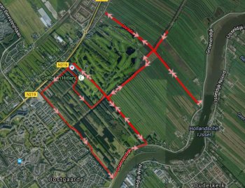 Maar al voor Gouda ging het mis en scheurde de hemel open. Totaal grijs weer en keiharde regen. Ik pakte buienradar er nog eens bij en zie dat de wolk er nog steeds ligt. Omdat we vertrokken met een heerlijk zonnetje, besluiten we alsnog om te keren en naar het Loetbos te gaan. Maar omdat we langs Hitland rijden en er NU zon is, besluiten we gewoomn te starten in het oude deel van Hitland. Daar is ook een deel onverhard dus dat zou ook wel Ok zijn om te lopen. Daar starten we dus voor onze run.