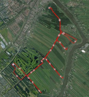 Daarna loop ik naar het oude gedeelte, slinger wat over de armen richting de dijk en pak het lusje door het oude gebied mee. Als ik weer een lusje wil maken, besluit ik even het offroad stukje naar de ooievaars te doen.