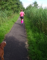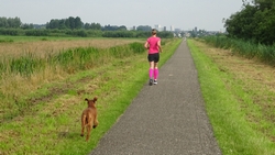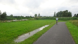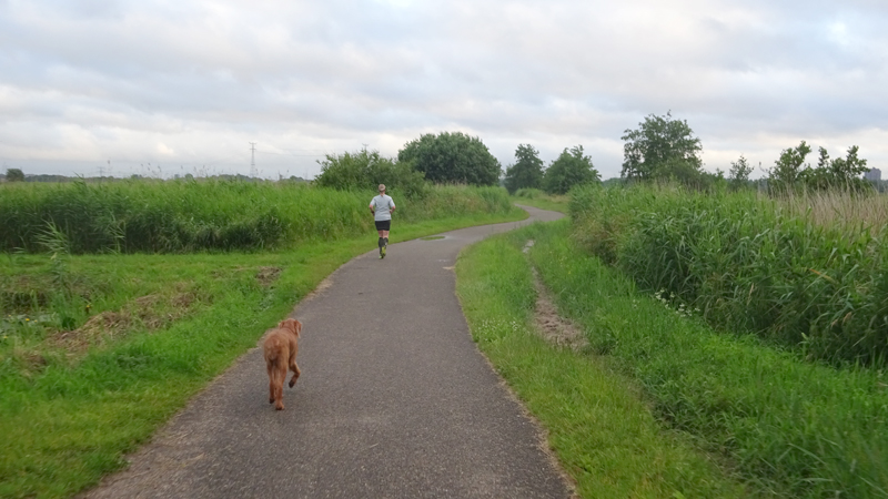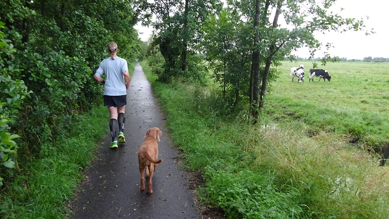 Vanmorgen ben ik om 8.30 al bij de garage. Twee weken geleden was ik daar ook voor nieuwe schokbrekers maar helaas blijken ze de verkeerde gemonteerd te hebben. Jammer maar helaas. Nou ja, te achterlijk voor woorden natuurlijk maar in ieder geval wordt het opgelost. Ik loop dus weer terug en aangezien ik straks de auto weer met de benenwagen moet ophalen, kies ik niet voor een hele lange ronde weer terug maar voor een korte 8 km ronde en dan ook straks weer 8 km terug (als ze tenminste op tijd bellen). Ik loop nu zonder woefje dus dat is een mooie gelegenheid om even binnen MAF weer een stukje continu te lopen. Ik ben benieuwd hoe dat gaat met de kilometers van de afgelopen dagen in de benen. Het regent als ik in de auto zit maar als ik start met de run, is het zowaar droog. Halverwege gaat het wel hard regenen maar dan ben ik al lekker onderweg en kan het me niet meer schelen. Het lopen gaat verder goed, ik blijf keurig in de zone maar het laatste stuk heb ik vol de wind tegen en dan loopt de hartslag wel een beetje op naar het maximale wat ik wil lopen. Maar ik ben niet ontevreden.