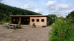 Ik besluit te gaan proberen om bij de volkstuintjes wat water bij te vullen voor woef. Ik slinger dus door het oude gebied op weg naar de ingang. Ook lekker in de schaduw dus dat gaat allemaal prima. Inmiddels hebben we er al ruim 18 km opzitten en dan is het ook wel logisch eigenlijk dat haar flesje nu op is, aangezien ze elke 5 km wat water krijgt en ik ook al wat over haar rug heb gegoten. Tot mijn verrassing staat de ingang open en loop ik rechtstreeks naar een mooi sanitair gebouw waar iemand zijn gieter staat te vullen. Ik mag wel even water bijvullen en als de vrouw even later zelf naar het toilet gaat, vraagt ze of ik ook gebruik wil maken van het toilet (dat normaal beveiligd is met een code). Dat wil ik heel graag. Woefje blij met haar water en ik ook blij. Na het bijvullen gaan we snel weer op pad. Zo’n pauze is nooit erg bevorderlijk voor het lopen maar we komen snel weer op gang. Valt me erg mee. Ik slinger nog wat door het gebied en probeer in de schaduw te blijven. Rondje hier, lusje daar en zo sprokkelen we weer wat afstand bij elkaar. Woef doet het verder prima en loopt rustig mee.