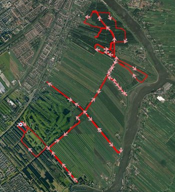 Na het badderfestijn is ze weer helemaal happy en nu kunnen we ook gewoon verder het laatste stukje doorlopen. Ik denk eigenlijk nergens over na onderweg. Ik loop maar wat en kijk naar woef. Ondertussen reken ik een beetje waar ik heen moet lopen en verder let ik op mijn loophouding, cadans en ademhaling. Die blijkt gewoon over het hele stuk mooi constant te zijn en te blijven. De hartslag loopt maar ietsje op als je daar al van mag spreken. Maximaal loop ik op 138 maar dat haal ik eigenlijk nergens. Het heeft natuurlijk heel lang geduurd voordat ik dat zo kon maar het is wel fijn. Ik eet verder ook niks onderweg, drink alleen wat water. Dat is ook erg fijn want dat afhankelijke van suikers onderweg is niet handig. Ik merk nu dat ik er op de fiets ook iets aan heb. Heerlijk dus.