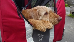 Gisteren heb ik niet gelopen omdat ik een fietsrondje van 84 km gemaakt heb naar Leidschendam en weer terug. Dat was erg leuk en ik bofte met het weer. Maar het leek me wel genoeg voor die dag eigenlijk. Vandaag ga ik met woef en S. op pad en we vertrekken even na 8 uur voor een rondje. Voor de zekerheid nemen we de doggyride mee omdat woef gisteren ook al de hele dag met me mee op pad was en het misschien vandaag ook warmer is dan gepland. Bovendien heb ik nog geen idee wat ik eigenlijk ga lopen en met de doggyride is zij niet zo erg de belemmerende factor bij deze keuze.