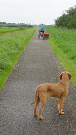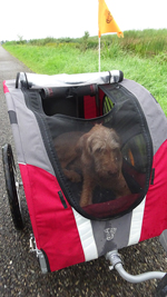 We gaan de rest van de route rustig uitlopen en woef kan ook uit de kar.
