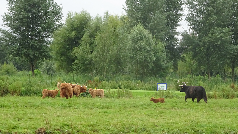 De eerste kilometer gaat wel redelijk en natuurlijk daarna de volgende paar ook. Wat zal ik doen? 4000-tjes? Of tweemaal 6000-tjes ofzo? Al mijmerend loop ik door en elke keer een kilometer erbij. We lopen langs de kalfjes die toevallig allemaal bij elkaar staan zodat het verschil goed te zien is.