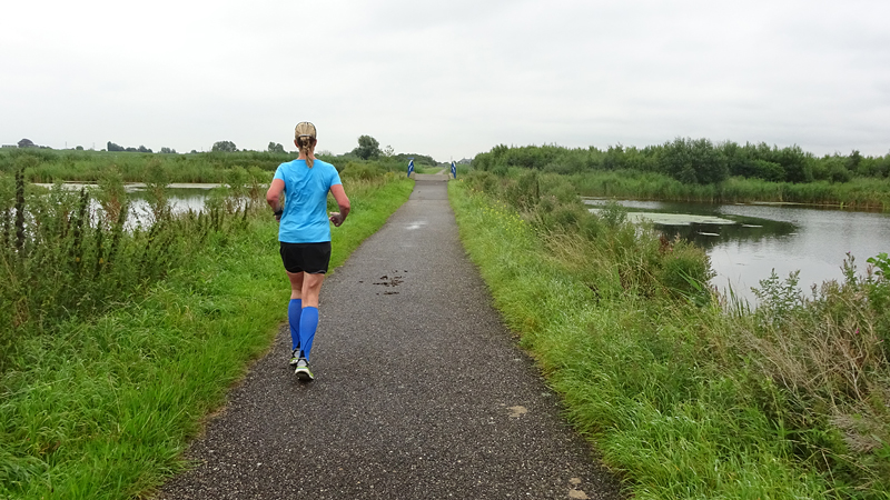 Gisteren heb ik niet gelopen maar zijn we gaan fietsen. Ik vond de vier achtereenvolgende dagen lopen onder meer in Limburg en Duitsland met het reizen en kamperen wel even genoeg. Soort rustdag tussendoor leek dus niet gek. Vandaag gaan we met de kano op pad samen met mijn zus en haar partner. Ik ben benieuwd hoe dat zal zijn. Terwijl S. de sandwiches voor onderweg staat te smeren, gaan woef en ik nog en snel even op pad voor een kort rondje. Tijdens het lopen bedenk ik nog hoe we het beste de sandwiches mee kunnen nemen op de boot en dat SMS ik aan S. Zo zie je maar dat je heldere momenten krijgt tijdens het lopen… Ik doe niets bijzonders verder, loop een beetje door mooi binnen MAF en na 11 km staan we weer bij de auto. Nu meteen weg met de kano zodat wij kunnen opbouwen en klaar zijn als zij komen en vertrekken met de huur kano. Jammer dat het totaal geen mooi weer is en nog waait ook maar we zullen zien…