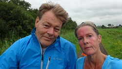 De asfaltweg wordt al snel een veldweg en dat loopt wel lekker ook al is het weer modderig. Het uitzicht daar is ook erg mooi over de velden. Als ik bijna bij de camping ben, moet ik een enorm smal paadje over waar de brandnetels en berenklauw vrolijk over het pad hangen. Ik ben benieuwd of ik de hele nacht verga van de jeuk en prikkels maar dat blijkt mee te vallen. Het is wel een beetje vervelend einde zo want het pad is ook nog eens slecht beloopbaar. Maar goed, ik ben er nu bijna dus doorlopen maar.