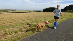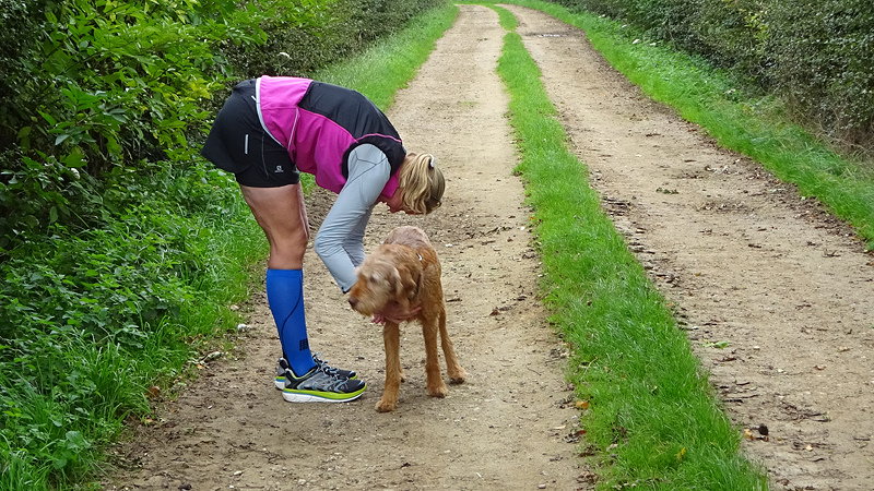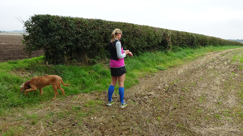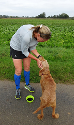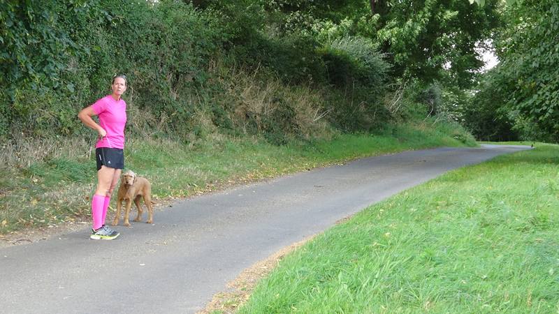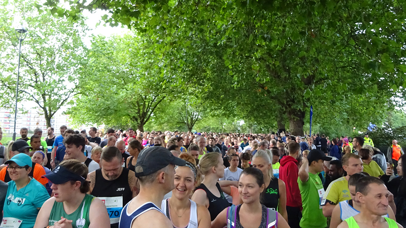Om 9.30 klinkt het startschot voor de elite lopers in de vakken voor me. Daarna gaan we in waves van start voor onze eigen run. S. vertrekt inmiddels terug naar de auto omdat hij de doggyride nog moet opbouwen, woef erin moet doen en op pad moet voor het stukje fietsen naar het punt waar hij me gaat zien. Ik heb niets bij me vandaag, alleen wat dextro in mijn zakjes en een tissue. Onderweg hebben ze hier waterzakjes die heel goed vast te houden zijn en die zal ik dus onderweg ook aannemen, plus water van S. en eventueel een spons.