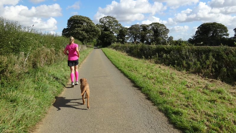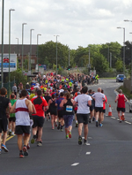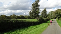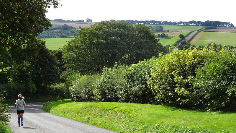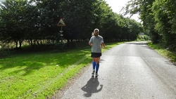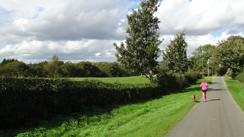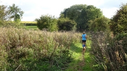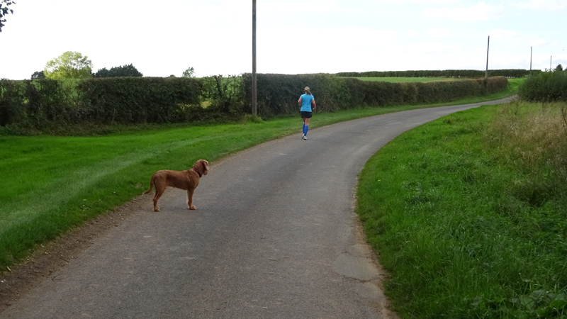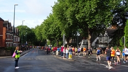 Nu komen er allerlei stukken met keerpunten en delen waar je dus een stroom lopers ook de andere kant op ziet gaan. De eerste loper zag ik al voorbij racen op weg naar de finish. Mooi gezicht als je zo iemand ziet lopen. Dat is pas echt hardlopen natuurlijk. Ik doe maar een beetje joggen als ik daar naar kijk. Maar ik zeg tegen mezelf dat dit mijn niveau is en dat ik het ook best goed doe voor mijn doen. ‘Ik ben sterk en ik ben fit’. Ik herhaal mijn mantra nog maar eens. Het valt me niet mee deze run maar ik vind het op zich ook leuk om te proberen mijn plan te volgen, dus het tempo dat ik wil, mooi continu lopen en dan ook nog met een gezonde hartslag. Zou dat lukken? Ondanks de route? Ik ga er echt mijn best voor doen en laat me door niets ontmoedigen. Noch de stop bij het castle, noch de snelle lopers die me inmiddels links voorbij racen de andere kant weer op. Ik ben wat tijd kwijt door dat gedoe bij het castle, maar daar kan ik zelf niets aan veranderen dus dat is dan maar zo. Verder geen excuus om dan te vertragen of iets dergelijks.