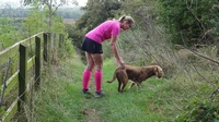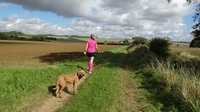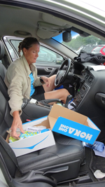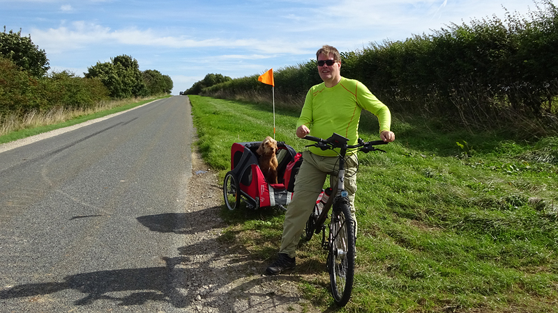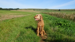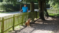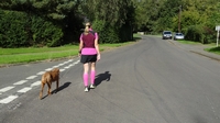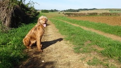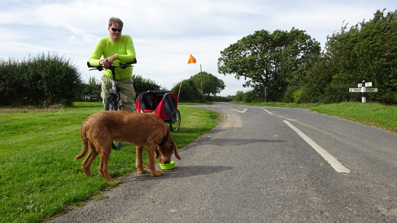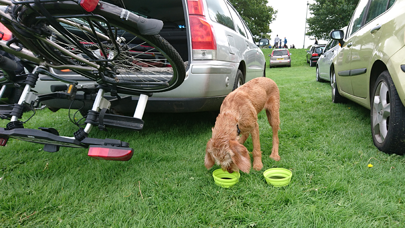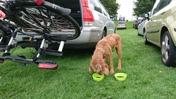 We lopen daarna naar de auto en gaan woef verzorgen. In het heetst van de strijd is S. helemaal vergeten om woefje om 11 uur wat eten te geven. Dat gaat er dus nu in als koek.