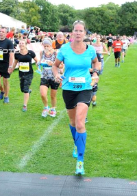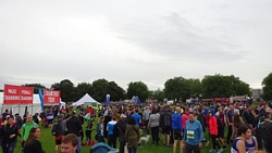 Ik ren over het gras. Lopen lopen…. he jammer de 2.11 haal ik net niet meer. Maar wel de 2.12 en ik ben dik tevreden. Onderstaand een bewerkte foto die gemaakt is op de finish matten. Inmiddels vragen ze 20 pond voor een foto dus ik ben zo vrij geweest om de watermerken er een beetje uit weg te werken en de foto dus niet te kopen. Op de andere foto kreeg ik ze niet weg maar toch leuk voor het idee.
