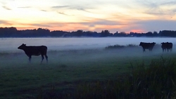 Vanavond nog even op pad voor een tweede rondje met woefje en S. Het is vrij laat als we vertrekken maar het is heerlijk om te lopen. Ik geniet volop en merk totaal niet dat ik al 22 km gelopen heb vanmorgen. Woefje vindt het ook allemaal helemaal fijn en loopt lekker voor ons uit. Wij kijken ondertussen goed uit dat we geen andere reutjes tegenkomen maar het is al rustig natuurlijk omdat het zo laat is al. De temperatuur is prima en de mistflarden over de velden zijn prachtig.