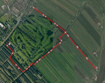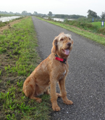 Ik loop nog even naar de dijk en terug, geef woef wat water besluit dat het genoeg is voor vandaag. Ze poepte al twee keer en dat was het voornaamste doel. Op de terugweg kom ik een reutje tegen waar woef uitgebreid mee gaat spelen. dat kan dus weer en er gebeurt niets hoewel ze nog wel lekker ruikt. Ik laat haar maar even dollen en praat ondertussen met de baas van de jachthond. Daarna loop ik gauw terug naar de auto. Woef poept en passant nog een keer dus ik ben tevreden. Doel bereikt.