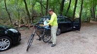 Al snel sta ik in mijn startvak en dan begint het wachten. Het is niet heel druk en er wordt niet geduwd. Inmiddels heb ik mijn broek en jackje uitgedaan want het wordt al best warm hoewel het in de schaduw nog fris is zo in de ochtend. Maar de zon zal er straks bijkomen, dus dan wordt het snel warmer. Ik heb me gehouden aan mijn plannetje qua kleding. Kort rokje, korte mouwen shirtje zonder hemd, calf sleeves en de sokken. Tijdens het rijden en het wachten had ik wel links nog een compressie sokje tijdelijk aan maar dat is inmiddels natuurlijk ook al uit.