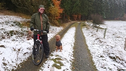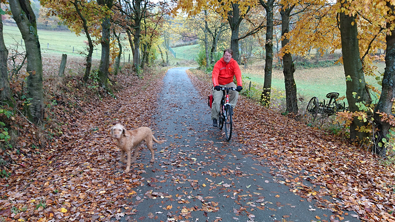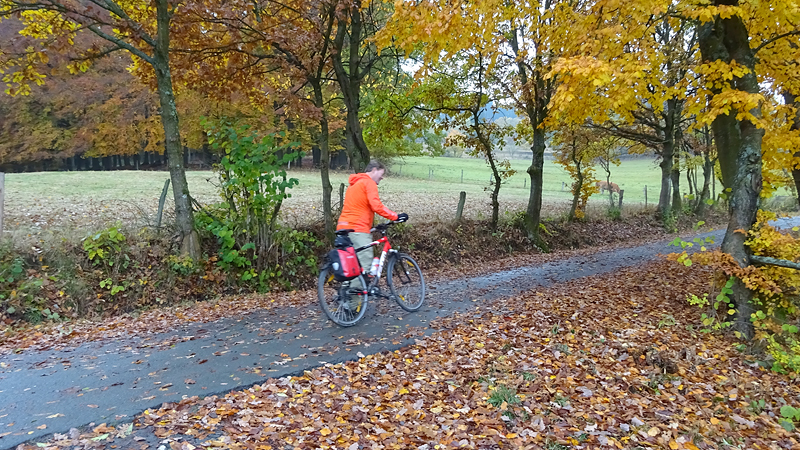 Het pad is goed te doen maar ik vind het maar knap dat S. zo met die fiets uit de voeten komt hier in dit terrein. Ik ben wel blij dat er nieuwe remmen opzitten inmiddels maar de remblokken zullen wel totaal versleten zijn als we thuis komen. Weekje heuveltjes en weg!
