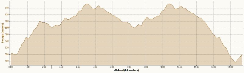 Omdat ik bij de toren mijn jackje heb aangetrokken, houd ik dat hier ook maar even aan. Hoofdbandje op en handschoenen aan. Het is hier ook wel iets kouder dan in het lager gelegen gebied. Het scheelt hier toch bijna 300 meter met het hotel.