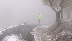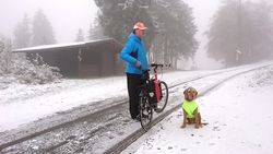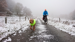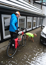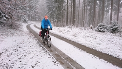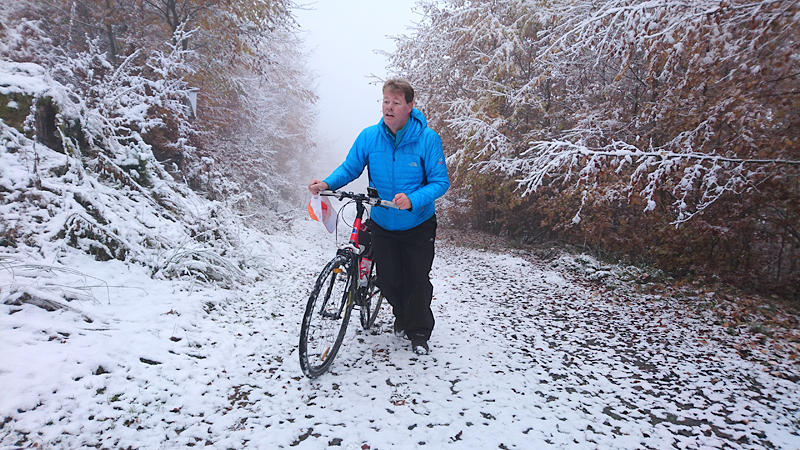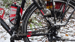 De fiets ziet er toch wel bijzonder uit met die sneeuwplakken overal. Dat fietsje heeft thuis wel wat onderhoud nodig denk ik en de remblokken slijten ook razendsnel natuurlijk.