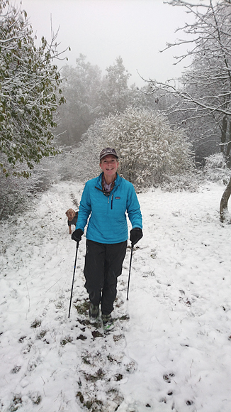 We kunnen inderdaad het paadje vinden en we klauteren naar boven. Er is natuurlijk niemand geweest en de sneeuw ligt echt best hoog. Het is wel een avontuur en we vinden het echt leuk om te doen op deze manier.