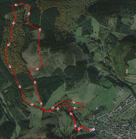 Na 19 km staan we weer bij het hotel. Misschien kunnen we vanmiddag nog een rondje lopen of eventueel wandelen met de stokken (dat deden we dus ook en dat verslag staat onder het kaartje). Als we hier nog een keer komen, gaan we zeker naar Winterberg lopen. We zouden dan zelfs het zo kunnen plannen dat we daar lunchen en waf eten geven en daarna weer verder of terug gaan! Ook is het wel handig om de volgende keer de mooie wandelkaart die ik jaren geleden kocht mee te nemen…..